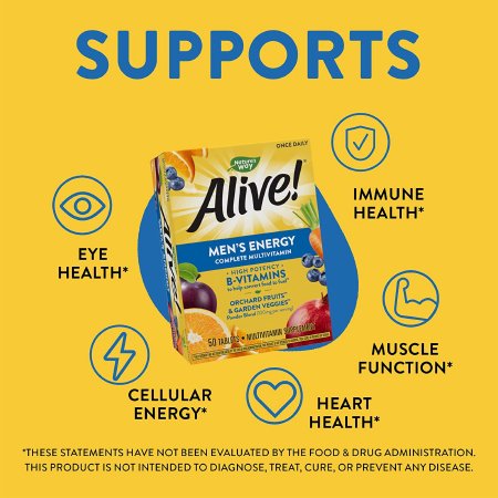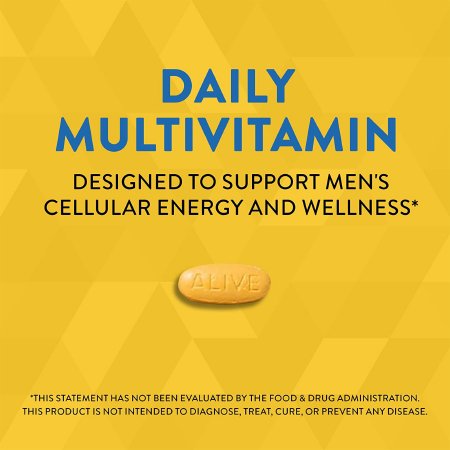 Multivitamin Supplement Alive!® Men’s Energy Vitamin A / Vitamin C 900 mcg / 180 mg Strength Tablet 50 per Box