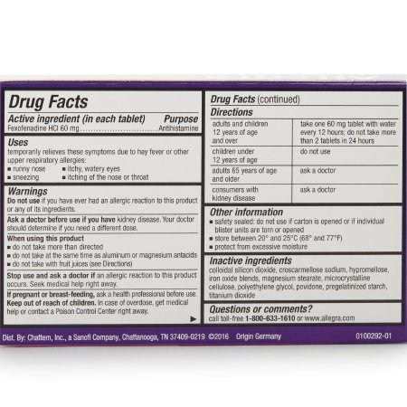 Allergy Relief Allegra® 60 mg Strength Tablet 12 per Box