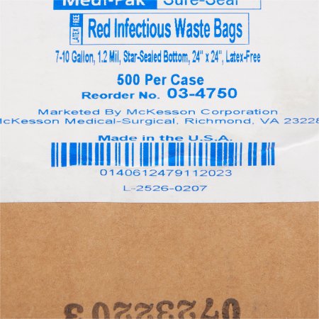 Infectious Waste Bag McKesson 7 to 10 gal. Red Bag LLDPE 24 X 24 Inch