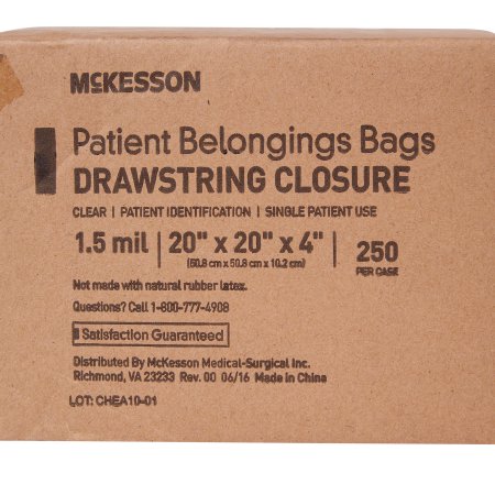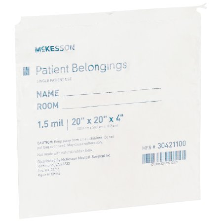 Patient Belongings Bag McKesson 4 X 20 X 20 Inch Polyethylene Drawstring Closure White