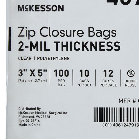 Reclosable Bag McKesson 3 X 5 Inch Polyethylene Clear Zipper Closure
