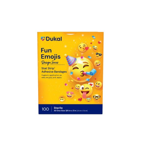 Adhesive Strip Designer Series with Stat Strip® Technology 3/4 X 3 Inch Plastic Rectangle Kid Design (Emoji Fun) Sterile