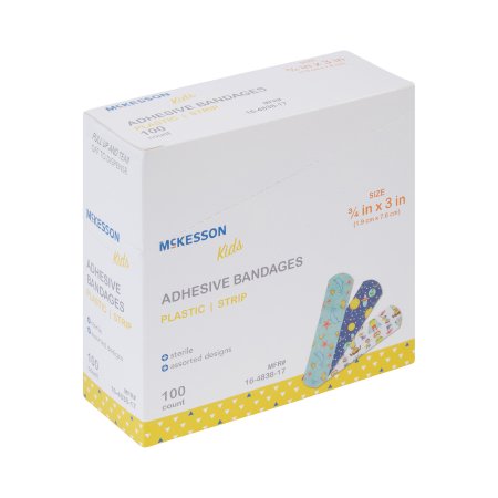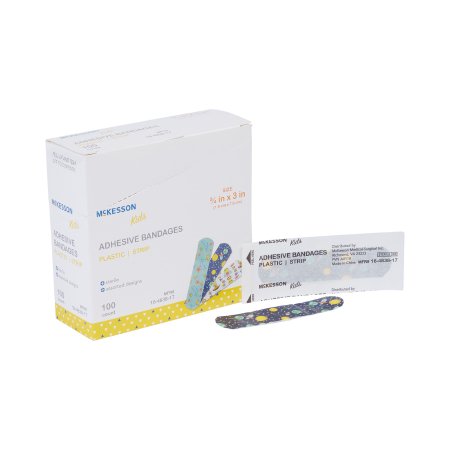 Adhesive Strip McKesson Kidsâ„¢ 3/4 X 3 Inch Plastic Rectangle Kid Design (Assorted Prints) Sterile