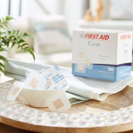 Adhesive Spot Bandage American® White Cross 1-1/2 X 1-1/2 Inch Plastic Square Sheer Sterile