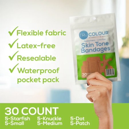 Waterproof Adhesive Strip Tru-Colour® Assorted Sizes Fabric Rectangle / Spot / Patch / Fingertip / Knuckle Olive Sterile