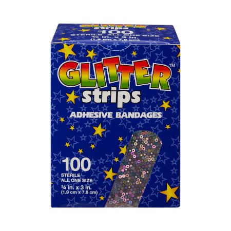 Adhesive Strip Glitter™ Stat Strip® 3/4 X 3 Inch Plastic Rectangle Kid Design (Glitter Strips) Sterile