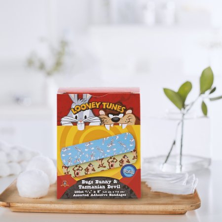 Adhesive Strip Looney Tunes™ Stat Strip® 3/4 X 3 Inch Plastic Rectangle Kid Design (Looney Tunes Bugs and Taz) Sterile