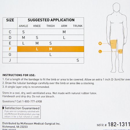 Elastic Tubular Support Bandage McKesson Spandagripâ„¢ 4 Inch X 11 Yard Large Knee / Medium thigh Pull On Natural NonSterile Size F Standard Compression