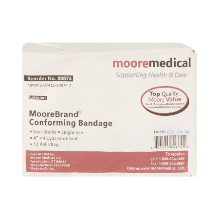Conforming Bandage McKesson 4 Inch X 4-1/10 Yard NonSterile 12 per Pack