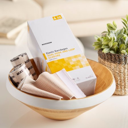 Elastic Bandage McKesson 4 Inch X 5 Yard Double Hook and Loop Closure Tan NonSterile Standard Compression