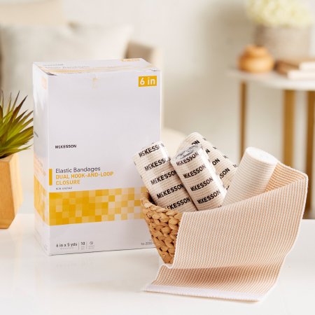 Elastic Bandage McKesson 6 Inch X 5 Yard Double Hook and Loop Closure Tan NonSterile Standard Compression
