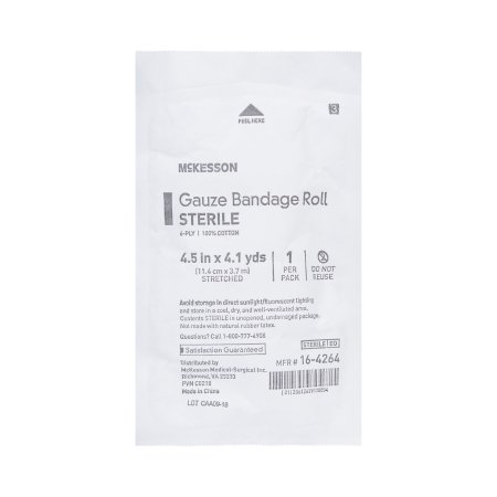 Fluff Bandage Roll McKesson 4-1/2 Inch X 4-1/10 Yard 6-Ply Sterile 1 per Pack