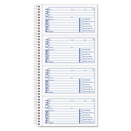 Spiralbound Message Book Two-Part Carbonless 5 x 2.75 4 Forms/Sheet 200 Forms Total