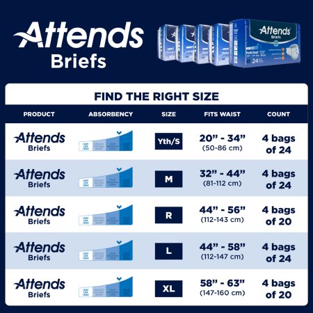 Unisex Youth Incontinence Brief Attends® Small Disposable Heavy Absorbency