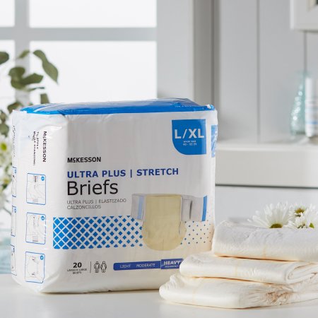 Unisex Adult Incontinence Brief McKesson Ultra Plus Stretch Large / X-Large Disposable Heavy Absorbency