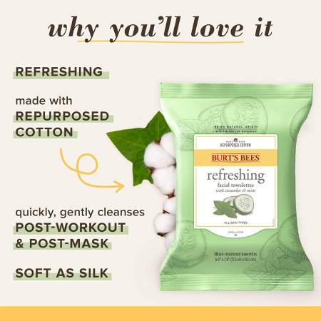 / BURT BEES TOWELETTES FACIAL CLEANSING CUCUMBER&SAGE (30/PK)