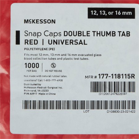 McKesson Tube Closure Polyethylene Snap Cap Red 12 mm / 13 mm / 16 mm (Universal) Fits Most 12mm 13mm and 16mm Evacuated Glass Blood Collection Tubes and Plastic Test Tubes NonSterile