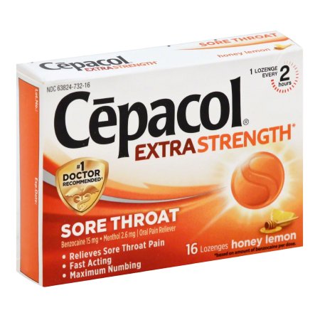 Sore Throat Relief Cepacol® Extra Strength 15 mg – 2.6 mg Strength Lozenge 16 per Box