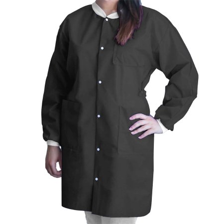 Lab Coat FitMeâ„¢ Black Large Knee Length 3-Layer SMS Disposable