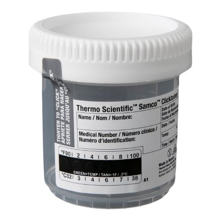 Specimen Container with Temperature Strip Samcoâ„¢ Clicktainerâ„¢ 53 mm Opening 90 mL (3 oz.) Screw Cap Patient Information NonSterile