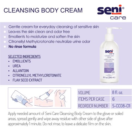 Rinse-Free Body Wash Seni® Care Cream 8 oz. Pump Bottle Light Scent