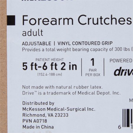 Forearm Crutches Mckesson Adult Steel Frame 300 lbs. Weight Capacity