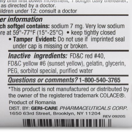 Stool Softener Geri-Care® Softgel 100 per Bottle 100 mg Strength Docusate Sodium
