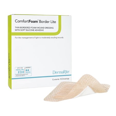 Thin Foam Dressing ComfortFoamâ„¢ Border Lite 2 X 2 Inch With Border Waterproof Backing Silicone Adhesive Square Sterile