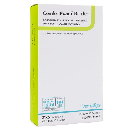 Foam Dressing ComfortFoamâ„¢ Border 2 X 5 Inch With Border Waterproof Backing Silicone Adhesive Rectangle Sterile