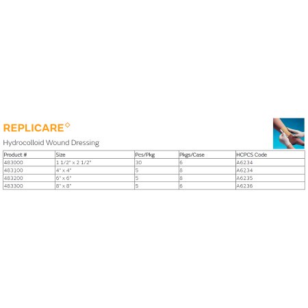 Hydrocolloid Dressing Replicare Film Backing 4 X 4 Inch Square Hydrocolloid / Film