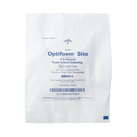 Foam Dressing Optifoam® Site 4 Inch Diameter With Border Waterproof Backing Adhesive Fenestrated Round Sterile