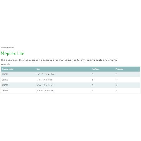 Thin Foam Dressing Mepilex® Lite 4 X 4 Inch Without Border Film Backing Silicone Adhesive Square Sterile