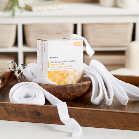 Elastic Net Retainer Dressing McKesson Tubular Elastic 10 Inch X 25 Yard (25.4 cm X 22.9 m) Size 3 White Medium Hand / Small Arm / Leg / Foot NonSterile