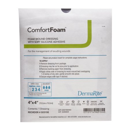 Foam Dressing ComfortFoamâ„¢ 4 X 4 Inch Without Border Film Backing Silicone Face Square Sterile