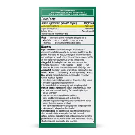 Pain Relief Excedrin® Extra Strength 250 mg – 250 mg – 65 mg Strength Acetaminophen / Aspirin / Caffeine Capsule 100 per Bottle