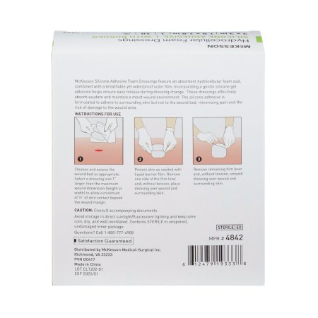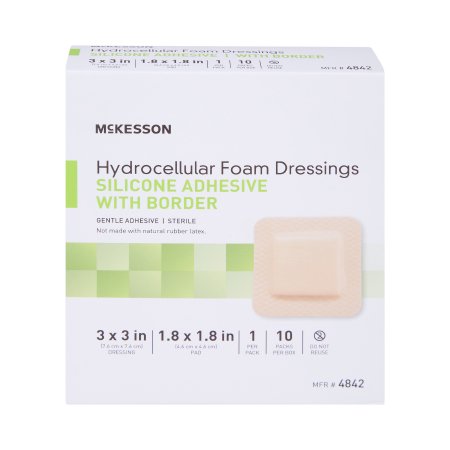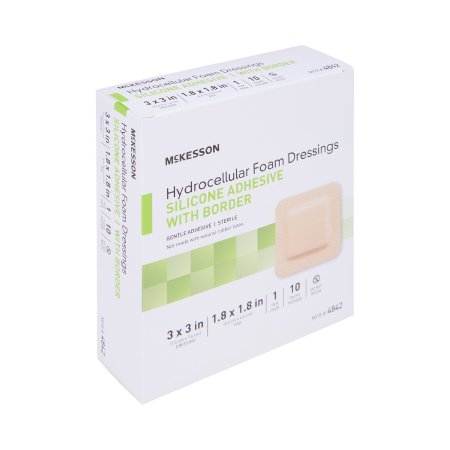 Foam Dressing McKesson 3 X 3 Inch With Border Film Backing Silicone Gel Adhesive Square Sterile