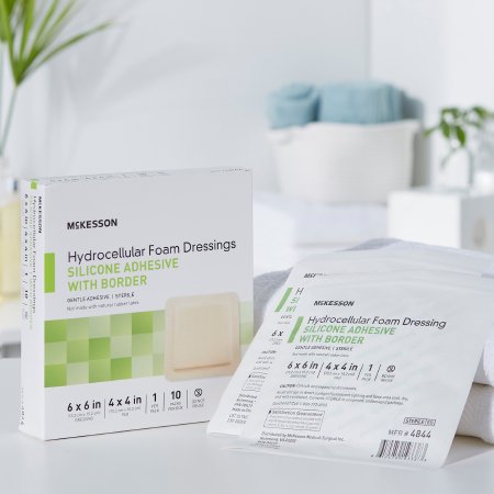 Foam Dressing McKesson 6 X 6 Inch With Border Film Backing Silicone Gel Adhesive Square Sterile