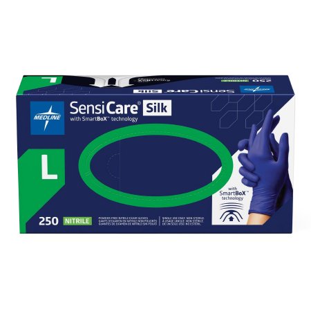 Exam Glove SensiCare® Silk Large NonSterile Nitrile Textured Fingertips Dark Blue Chemo Tested