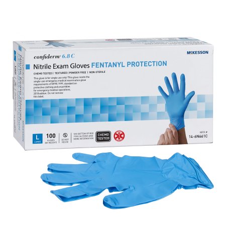 Exam Glove McKesson Confiderm® 6.8C Large NonSterile Nitrile Standard Cuff Length Fully Textured Blue Chemo Tested / Fentanyl Tested