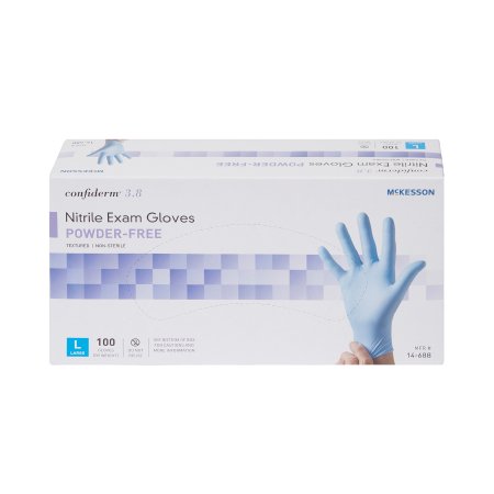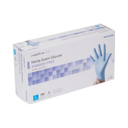 Exam Glove McKesson Confiderm® 3.8 Large NonSterile Nitrile Standard Cuff Length Textured Fingertips Blue Not Rated
