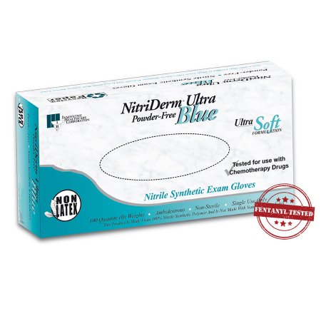 Exam Glove NitriDerm® Ultra Blue Large NonSterile Nitrile Standard Cuff Length Fully Textured Light Blue Chemo Tested / Fentanyl Tested