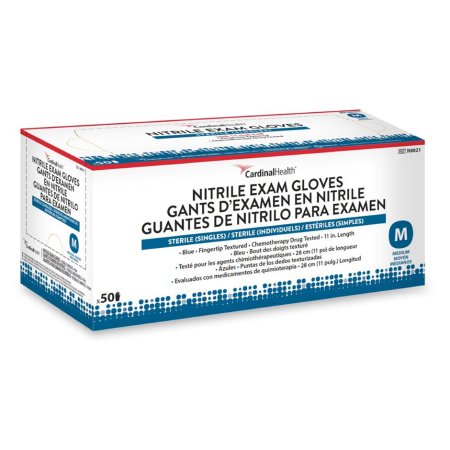 Exam Glove Flexam® Large Sterile Single Nitrile Extended Cuff Length Textured Fingertips Blue Chemo Tested