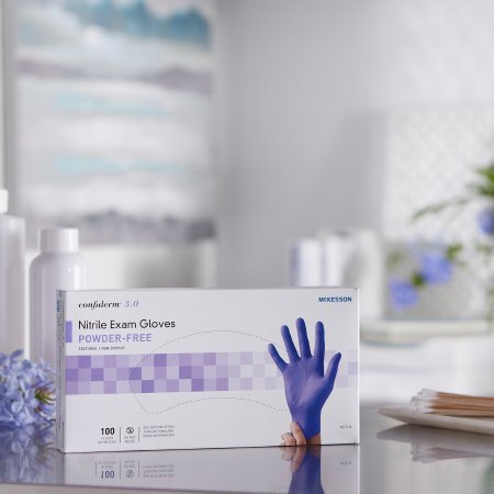 Exam Glove McKesson Confiderm® 3.0 Medium NonSterile Nitrile Standard Cuff Length Textured Fingertips Blue Not Rated