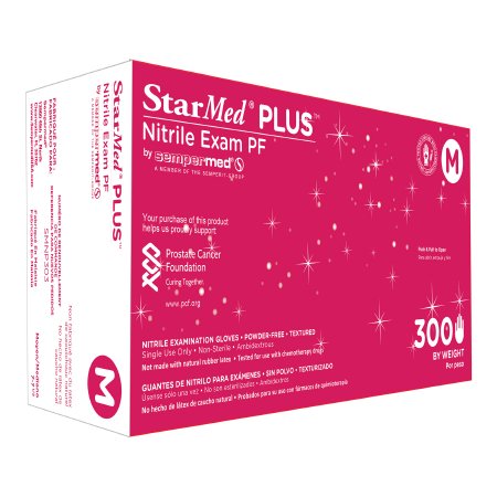 Exam Glove StarMed® Plus™ Medium NonSterile Nitrile Standard Cuff Length Textured Fingertips Blue Chemo Tested / Fentanyl Tested