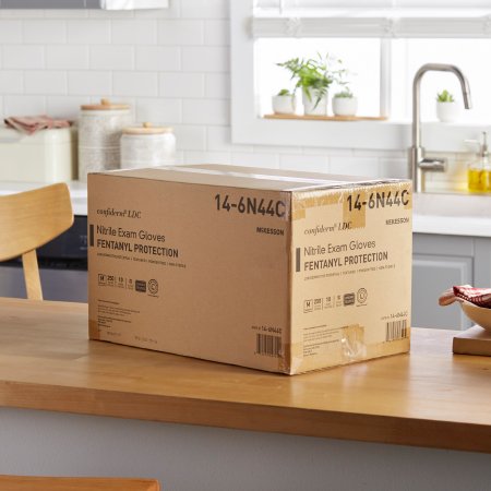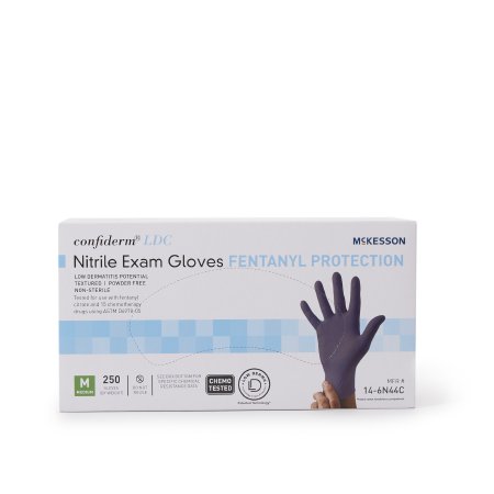 Exam Glove McKesson Confiderm® LDC Medium NonSterile Nitrile Standard Cuff Length Fully Textured Blue Chemo Tested / Fentanyl Tested