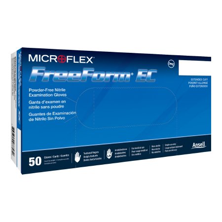 Exam Glove FreeForm® EC Medium NonSterile Nitrile Extended Cuff Length Textured Fingertips Blue Not Rated