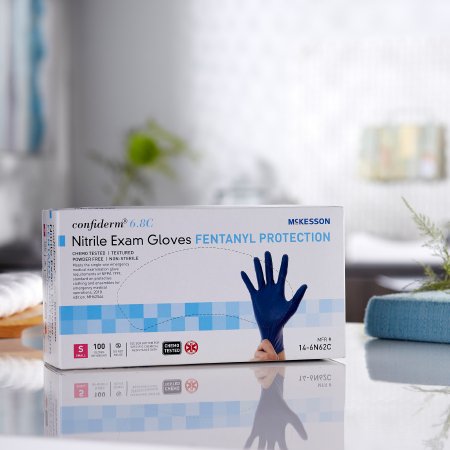 Exam Glove McKesson Confiderm® 6.8C Small NonSterile Nitrile Standard Cuff Length Textured Fingertips Blue Chemo Tested / Fentanyl Tested
