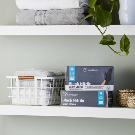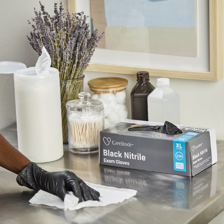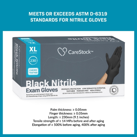 Exam Glove CareStockâ„¢ X-Large NonSterile Nitrile Standard Cuff Length Fully Textured Black Not Rated