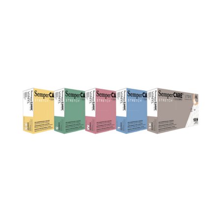 Exam Glove SemperCare® Vinyl Medium NonSterile Stretch Vinyl Standard Cuff Length Smooth Ivory Not Rated