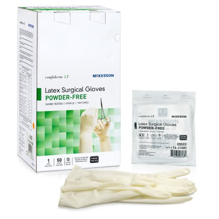 Surgical Glove Confiderm® LT Size 8.5 Sterile Latex Standard Cuff Length Fully Textured Ivory Chemo Tested